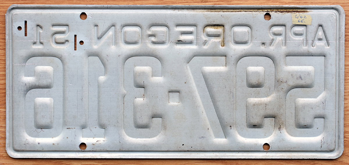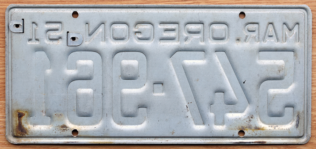 1951 Oregon (50 plate updated with 51 tab) - $50.00 (SOLD)