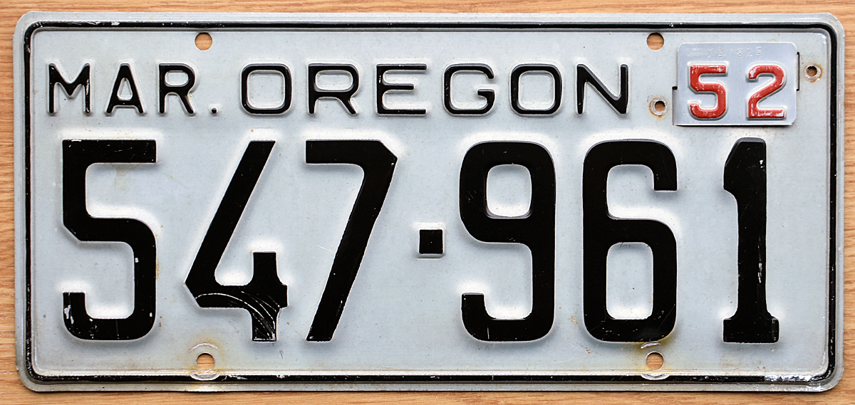 1952 Oregon (1951 plate updated with 52 tab) - $45.00