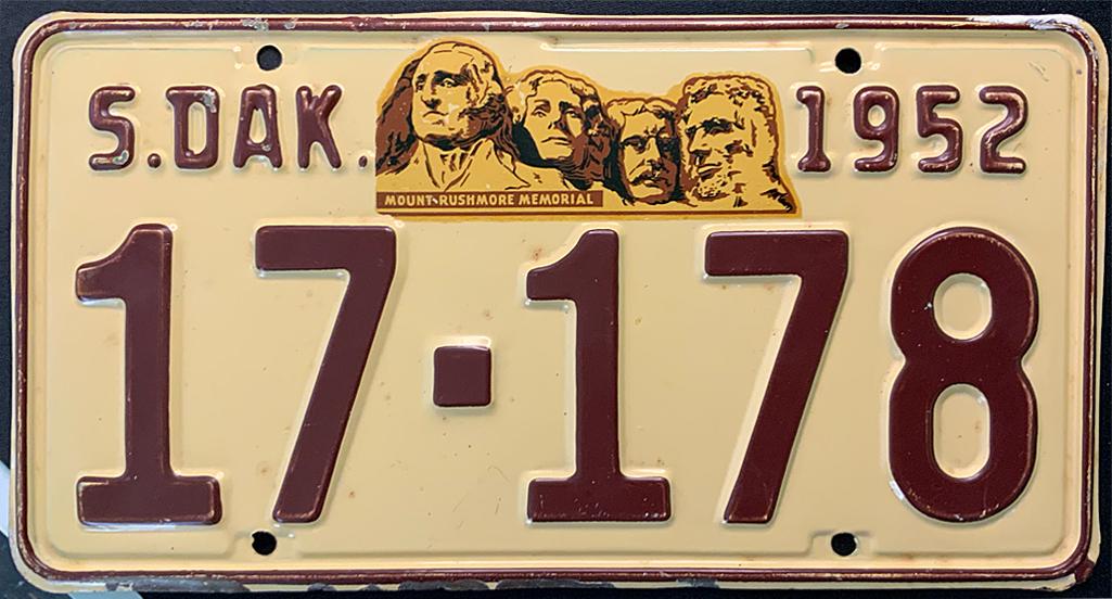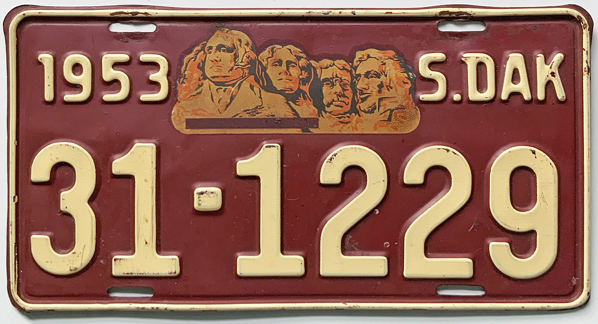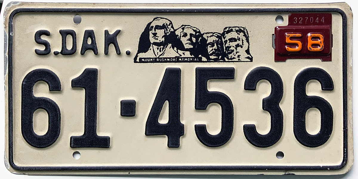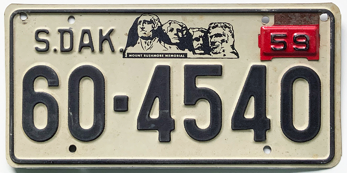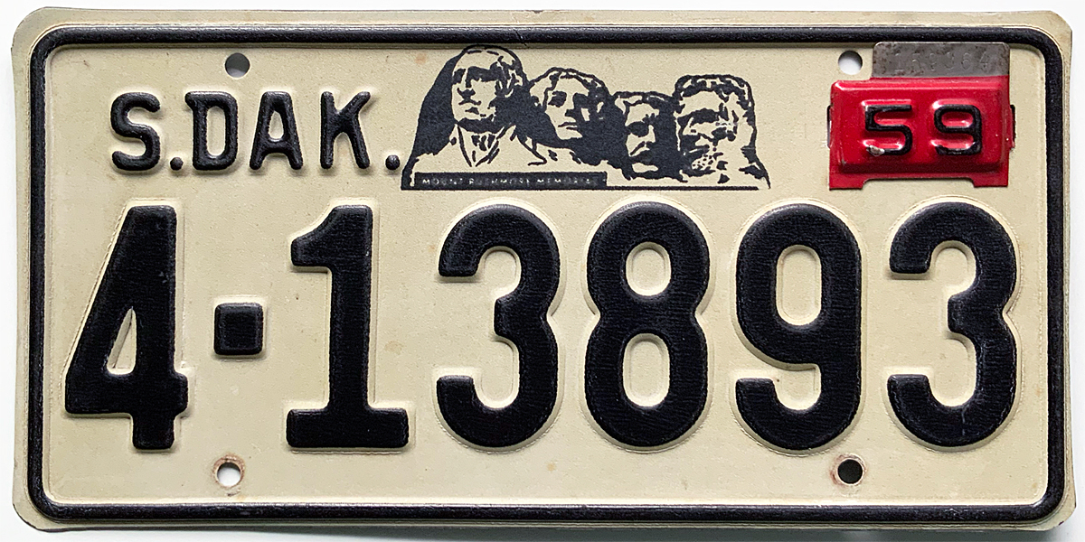 1959 South Dakota issued in Tripp County (57 base with 59 tab) - $20.00 (extra upper bolt holes left and right)(SOLD)